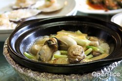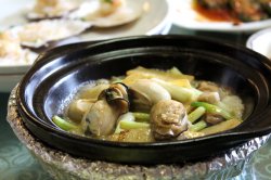 节日里家庭聚餐去的,对它家的海鲜粥有兴趣,尝尝滋味如何?《烧味拼盘》特喜欢烧鹅,外皮香脆,肉多汁,好美味;《海鲜粥》一大锅上来,色味很诱人,食欲大开,料真多,蟹很壮实,黄实足,并有干贝、和大虾等,吃口鲜美,吃得爽,赞;《冰镇黄鳝》象吃日料一样,鲜嫩的黄鳝片沾上芥末酱油,别有风味;《剁椒蒸牛蛙》蛙肉很鲜嫩,又入味,重口味的特爱;点心《鸳鸯馒头〉油煎的外皮色泽金黄香脆,沾着炼乳吃,好香,好可口;总结:招牌海鲜粥,有特色,值得尝尝。…查看更多