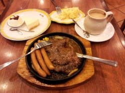 以前是附近学校的学生,第一次吃西餐就是在这里。最喜欢西西里肉酱饭,味道非常浓郁,后来又喜欢上了奶油蘑菇面,不腻,但是奶油味道又非常重。现在喜欢上了这个牛排套餐。有一份牛排,然后加了个香肠,还有一份饼加蔬菜沙拉,一杯柠檬茶,加在一起,这样一份套餐只不过48元而已,经济实惠哦。不过建议大家还是堂吃,外卖的话要加10元不算,所有的打包盒还要自己花钱买,上次去买的时候,套餐里的饼和蔬菜沙拉,柠檬茶都不肯给我,我向对方提出的时候,还收到对方无数的白眼和嫌弃。如果这个套餐外卖不接受的话,提早告诉我一声就好了,为什么要我花套餐的费用吃到的是单价的东西,还要忍受服务员无限嫌弃的白眼。以前非常喜欢这家店,从它还没有名字,只是叫披萨屋的时候就一直光顾了。因为一直是堂吃的,直到这次心血来潮想外带才看到了不一样的一面。店是好店,这个要实事求是的说,但是要看你的就餐习惯——如果喜欢叫外卖的,不推荐这家,喜欢堂吃的,这家是家经济实惠的店。查看更多