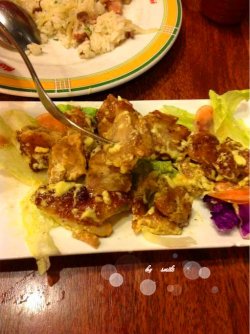 自从发现昆山路小店很多以后,每周都会想办法来吃一家马格罗尼最出名的恐怕就是价格优惠以及菜色选择够多多到我看到菜单总想不出吃什么男友点了一份意式芝士牛肉炒饭无肉不欢的他说肉粒少了一点,不过味道不赖因为肚子很饿很快就被他消灭了我则要了一个日式咖哩软骨饭软骨还是不如实在的肉来的好吃咖哩拌饭味道是一级棒的套餐里虽然有附送土豆色拉但是不够两人吃的他们的色拉一直很受欢迎卖完就没有了所以又加了一份土豆很酥的,口感实在,加上又有胡萝卜丁的清香就算容易吃饱也还是吃光光原本以为芥末烤鸡会有些辣但是吃起来却没有很冲鼻被服务员搞乱了摆盘影响了照片的美感而且他们都一定要你叫了才会过来服务有一点遗憾查看更多