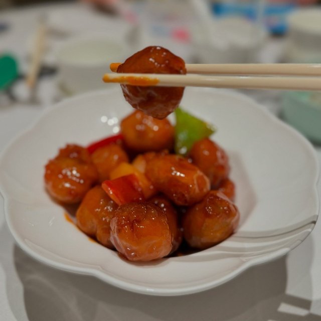 4: 高山蘆筍烤蘑菇🍄🟫蘆筍清爽很嫩,沒有草青味,配以xo醬炒帶出提鮮味道,蘑菇釀入蝦滑,口感豐富。5: 招牌龍蝦🦞泡飯味道一般。只有小蝦肉,只是因為聽說是招牌菜,所以才來一窩,湯汁很濃,香脆炒米再配上米飯確係另一番口感。6: 海膽醬焗蝦球口感和味道都比較有層次,下面用上清甜蜜瓜墊底,但完全沒有海膽味道:(