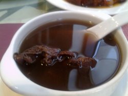 这家店其实是去年有一次我们俩去吃的,最早以前还吃过一次,去年那次是我们自己单花钱去吃的,当然那里因为有个电影院上午看电影,中午去吃。这家店在世贸天阶里面,坐车43、126到芳草地下车往南一些,路东就能看到世贸天阶,到世贸天阶最里面有个世界城,在世界城商业街里面,跟星美影院在同一楼。店里还挺大的,环境不错,很亮堂,看样子显得挺豪华的。服务员态度也很不错呢,2次去的都很不错。去年那次我们俩点了菠萝咕佬肉、烧味双拼、鲜虾云吞面、皮蛋瘦肉粥、咖喱牛腩和金牌蒜香骨。烧味双拼,我记得一半叉烧肉和一半烧鹅,烧鹅味道还不错,就是肉略硬一点,还算有嚼劲吧,叉烧肉不错,软嫩入味,还有甜甜的味道。鲜虾云吞面,好像是4个大云吞,剩下都是面条,面条有点像方便面似的,细长还带有波纹,里面还有几颗芥兰,脆脆的,面条虽然有点像方便面,味道还是挺好的,云吞更好吃,里面真的有虾仁,整只的,吃起来很鲜美。菠萝咕佬肉,酸甜的菠萝块儿搭配肉非常好,菠萝可以去除肉的腻感,菠萝脆脆的,肉提前炸过,外脆里嫩,最外面还浇了酸甜汁,非常可口。皮蛋瘦肉粥,熬得挺浓稠的,皮蛋和瘦肉都挺多的,肉挺嫩的,喝起来很舒服。咖喱牛腩,牛腩量还好,还挺嫩的,也挺有嚼头,咖喱味道很浓郁,可惜没有要米饭,其实这个咖喱是很下饭的。金牌蒜香骨,大长块儿的排骨,蒜香味很浓郁,排骨挺软烂的,应该是炸制的吧。…查看更多
