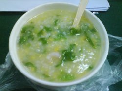 天热,喜欢吃些清淡点的东西,这家店的门面很小,要想好好坐在里面吃连等位的地方都米有,所以一般我们都是集体叫外卖,一碗菜粥,一个咸蛋加凉拌金针菇,完美搭配啊,菜粥有点淡了,如果里面能放一点点肉丝味道肯定就更加好了,而且偶们发现就在马路对面,送个外卖竟然要1个小时,伤不起啊!!!!查看更多