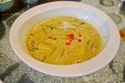 飘然的假期结束了,FB热情不减,冒着滂沱大雨来到瓦城泰国料理 滨北店。第一次去可能不是很好找,在老别墅对面,要沿着马可波罗那条路下来,右拐就是。环境:挑高的小两层楼中楼,一楼好像座位不多,主要在二楼,整体装修硬件还行,但颇为单调,少些点缀。菜品的话,跟SM店水准差不多 推荐: 青木瓜沙律,卖相比较逊色,但是酸甜可口,作为开胃菜决对是首选 经典的月亮虾饼,泰式咖喱鸡 口感口味都挺稳定的。 青咖哩跟红咖哩个人感觉偏咸,里头的肉有点老有点燥。 比较有惊喜的是甜品,以前怎么就没发现,他们家的甜品做的还是不错的。特别是那慕斯蛋糕口感绵密,温润适口,不像有些吃起来全是香精味儿。
