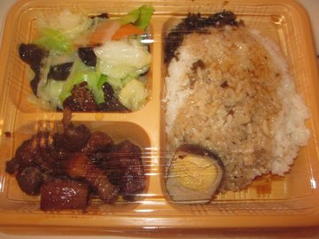 种类很多,有招牌饭田老师红烧肉、梅菜扣肉、麻婆豆腐、咖喱鸡块盖饭等,最喜欢吃的是红烧肉盖饭,红烧肉做的很好,肥而不腻,味道做的很合适,里边还有半个卤蛋,一些圆白菜,搭配上营养。米饭的量稍小些,女生够吃男生加碗饭或者加一个烤肠应该能吃饱。价格上特别实惠。