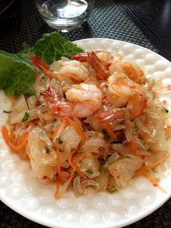 开在宁波路上 感觉地段有点偏 其实地铁出来走走很近的门面是如此的不起眼 一不小心就会走过头的一楼就只有一个收银台 还有些摆设什么的 没有用餐的地方甲泰特选青边炉 98米其实就是个小火锅 配菜么就是三种荤的外加一个素拼盘 本来觉得这个价格还蛮不值的直到把粉丝放到汤底里面 吸收了汤汁 那叫一个入味呀 好吃!甲泰特选芒香鲈鱼 88米鲈鱼是油炸锅的 上面挤了柠檬汁 不喜欢的人就是不喜欢像我这种嗜酸的人真是太和我胃口了 就是所谓的芒香木有吃出来呢经典猪颈肉 48米猪颈肉要的就是弹性十足 喜欢呢!无骨凤爪沙律 40米去骨的凤爪最有爱了 很适合我这样的懒人这个虽然有点酸 但是辣的程度是77这样怕辣的人承受不了额普吉虾饼 48米这个虾饼怎么可以那么有弹性 必点呢!柚子大虾沙律 48米上面的大虾分不清楚是生是熟77不喜欢吃生的 吃起来口感还行 没有腥味配的柚子有苦到我呢~~~黄咖喱牛腩煲 48米这个咖喱吃起来还不错 但是不能算出彩另外要了一份白米饭5米用来板咖喱汁 一点不浪费呢!经典金边粉 38米就是看到点评网有人推荐吃起来很一般呢 还没有茶餐厅的炒河粉好吃......原味原只凤梨饭饭炒的还是不错的 凤梨味也能感觉到一点的椰汁西米糕 20米一份四个 冰冰凉凉的 也不会过甜 吃起来小清新的感觉 不错哟~查看更多