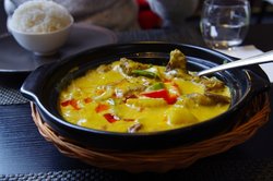 甲泰环境比较优雅,进店灯光略暗,走楼梯的时候,老是觉得有踩空的感觉。咖喱牛腩,配上米饭,这样的搭配应该已经算是标配了呢,咖喱味道浓郁,很不错。椰汁西米糕,20元,一个四个,甜点味道也很不错。查看更多