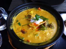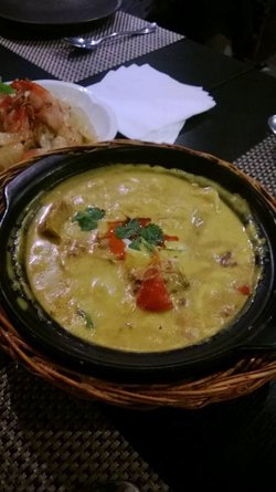 一看店名就知道这家是做咖喱的,泰式咖喱我最爱啊店里装修都走东南亚风格,很有异域风情点菜的话,首先必点的自然是咖喱!特意点了咖啡牛腩来吃,咖喱味道很浓,口感很丰富,只是吐槽下牛腩量少了一点啊,不过炖煮的倒是很透彻,已经很酥了,不会咬不动,然后咖喱可以用来配饭吃,咖喱拌饭真的好吃,比外面自己买什么速食咖喱好吃太多了啊青柠边炉是他们家服务员推荐的,等于是个小火锅了,上来一个锅子是锅底,然后会给配菜,从海鲜的虾仁,鱿鱼,到蔬菜菌菇什么的,可以自己把食材放入锅子里一起煮,酸溜溜的口感,还带有辣味,很开胃,满满一锅子吃的浑身热乎乎的其余的话就点了一些小食来吃,金边粉,虾仁饼,猪筋肉,都还蛮不错的,吃泰国菜的话,还是比较推荐他们家的查看更多