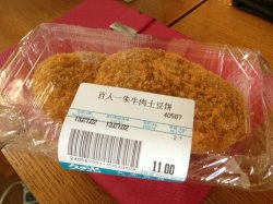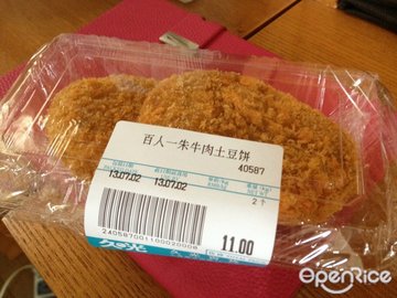 在超市里的一个柜台,专卖日式的炸物和烤物的。他家的可乐饼很好吃,其实可乐饼和可乐并没有半毛钱的关系,只是说从日语直接音译过来的。主料其实是土豆,叫土豆饼比较确切。土豆被弄成类似泥状,不过不会弄得太细腻,还是偶尔能吃到土豆块的。根据不同口味里面放牛肉、咖喱什么的配料的。给的酱汁也很好吃,不过稍稍咸了些,下午肚子饿的时候来上一个很不错。…查看更多