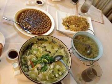 周日,辣妈和奶爸参加完越剧团的演出,顶着寒流一路从浦东直奔江宁路的百嘉盛大酒店享用辣妈在点评网参加网站活动赢得的奖品-----一顿丰盛的温州瓯菜!感谢点评让辣妈和奶爸在严寒的冬天享受了一把温暖的免费大餐!晚上六点,辣妈奶爸带着大肚皮同学一行三人来到了位于江宁路1286号的百嘉盛大酒店。这家店位于江宁路桥一边,前一阵子桥大修,辣妈就一直没有到过这里。没想到桥修好了还有新开的饭店相迎,真是双重惊喜啊!瓯菜?念什么音?“oucai”是温州菜系哦。酒店分三层,底层是选菜大厅,,二楼是宴会厅,三楼是包房。选菜大厅的服务小姐接待热情解说贴心,让我们一下子就对这家店有了很大的好感!就餐环境是观景小包房,那待遇真是相当的好哇!餐具干净大气,殷勤的服务生早早的为客人倒好了调料。正值圣诞期间,服务员小姐带着圣诞帽子非常可爱!这鲜榨芝麻糊可是免费的赠品哦!没想到拿着抵用卷还能享受免费赠饮真是双重惊喜哦!热乎乎的鲜榨黑芝麻糊浓稠香甜,连口我那味挑剔的大肚皮朋友也赞不绝口呢!店里的瓯菜特色就是温州炒粉,细细的粉丝在家常菜的拌炒下咋就那么好吃呢?既然是店家招牌菜肯定是有制作秘籍的说,好吃!大肚皮孕妇爱吃酸菜鱼,所以我们就点了一份。没想到端上来量是那么的大啊!鱼肉鲜美肥嫩鱼刺少,酸菜酸味十足脆嫩可口!超赞的酸菜鱼啊!瓯菜馆能做出如此好吃的川菜也是难的的不易啊!压轴是店家的瓯菜特色:温州鱼丸汤!这鱼丸可不比潮州鱼丸的圆大,而是长条形,但是Q绝不亚于潮州鱼丸。清汤淡雅鱼丸超Q,真是美味啊!奶爸点的店里新创意特色甜点:炒丸子。好吃的焦糖糯米丸子哦!辣妈最爱甜食了!来张美食集体照,整桌菜价值216元,出去辣妈的200元抵用卷,只花了16元就吃到了如此惊艳的美食,真是太超值啦!感慨一下:“信点评,得美食!”压轴是辣妈的到此一游美女照,因为刚唱完越剧红楼梦,辣妈是不是有股黛玉的柔美啊?没想到一张普普通通的美食抵用卷会给辣妈一家带来如此大的惊喜!百嘉盛大酒店已经被辣妈收藏作为家庭聚会必备餐厅,因为这家店服务环境菜式都是超一流的棒!…查看更多