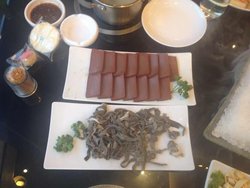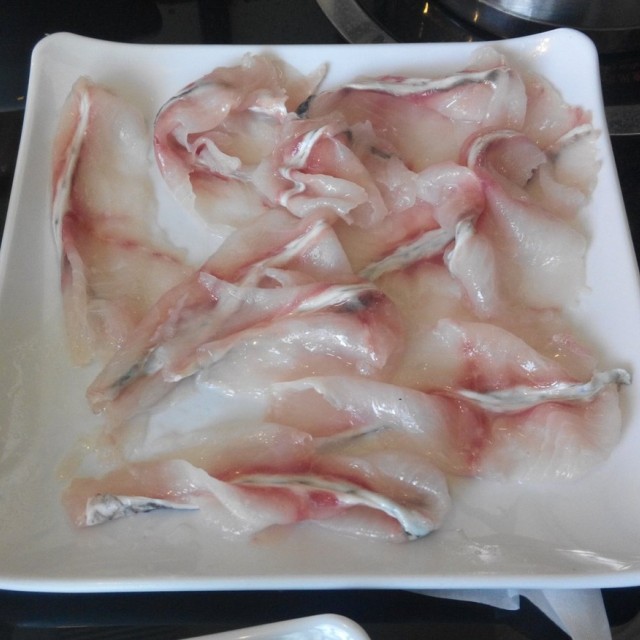 喜欢斑鱼刺身,非常新鲜,蘸一点调汁,鱼肉的鲜美和调汁中芥末的辛辣一同在口中碰撞,非常美味。还有涮鱼片也不错,鱼切成很薄的大片,放入锅中涮一下即可,当然,涮的时间长一些也无妨,鱼肉会依旧保持鲜嫩,再蘸上我钟爱的麻酱小料,太赞了!今天鱼肉吃了个够。菌菇拼盘除了容易塞牙的金针菇,也都是我喜欢的。蔬菜拼盘水灵灵的也很好。