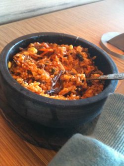 刚坐下时,觉得那里烟味到是有点,可是自己吃的时候就没在意了,点的是麻辣牛肉石锅拌饭,挺辣,肉好少啊,蔬菜是胡萝卜,也不是很多,吃完就出汗了,好在套餐里还有鲜菇蛋花汤,不错啦,上次团购里还有本本子,闲来看看。查看更多
