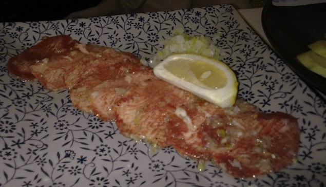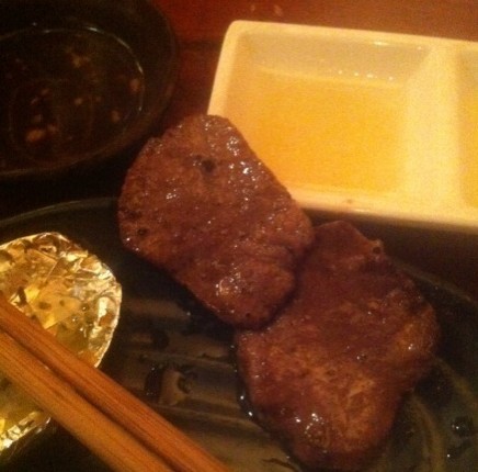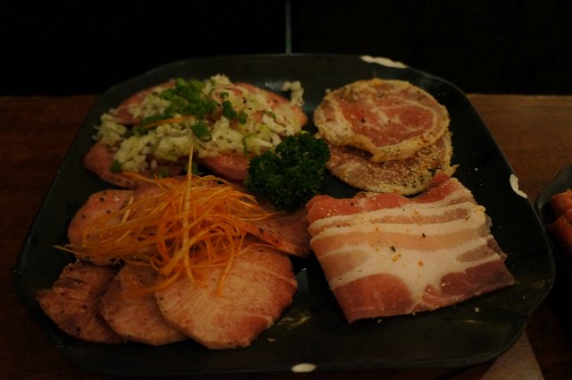 环境还可以,古韵十足,温馨而静谧,室内柔柔的灯光稍显昏暗,给人一种神秘的感觉。餐桌和椅子都是木质的,看着很是舒服,餐桌上处理的很干净,没有什么油渍,也比较干爽,不像有时候吃饭时遇到的那种湿漉漉、油腻腻的感觉,看着就觉得很卫生,让我们用餐的心情很愉悦。座位之间的距离比较大,既显得宽敞整洁,又能充分保护客人谈话的私密性,挺好的,赞一个!餐厅的服务还可以,还算是比较周到的,刚到的时候就有服务员问有没有预定之类的,然后径直带我们进去入座,耐心的介绍说有些食物可以连盘子一起放上去烤,并且告知我们用餐时间限制为两个小时,从我们点餐的时候开始计时,如果超出这个时间就必须支付比较高的服务费,让我们自己控制好时间。介绍的比较详细,这点确实值得表扬,呵呵!环视周围,很多人用餐,但却没有丝毫的嘈杂感,不知道是餐厅的隔音效果不错,还是我们的心情太过于轻松愉悦。餐具以黑色为主,迎合了餐厅本身暗暗的环境,完美的融合让人有种在约会而非用餐的错觉。筷子都有专用的筷子架搁着,显得比较有档次,更重要的是干净卫生,用的放心。餐牌很华丽,从第一页翻到最后一页,依然不知道吃什么,也没有标注每道菜的价格,感觉很不方便,但是为了避免超时支付50%的高额服务费,来不及细想,随意点了一些名字不太熟悉的菜式,然后边欣赏餐厅里面的环境,边静静等待美味佳肴的到来。本来以为会等很久,没想到很快就上来了,有点意外的惊喜。看着华丽丽的菜肴,好想全部收纳到相机,无奈餐厅里面太过昏暗,开了闪光灯,NG了多次,终于拍了几张能看清的图片,奈何!还有一点无语的是,服务员每次放下菜就跑了,救火似的,虽然速度是很快,但是吃到最后都没有弄明白很多碟子里面分别装的是什么菜,实在是吃的糊涂,有几个还是将已经急匆匆离开的帅哥强烈叫回来重新询问才勉强得知了半个菜名的,唉,这点希望能有所改进。这个不知道是叫什么煎饼,神色匆匆的帅哥服务员说的太快,实在没怎么听清楚,不过口感还挺好的,黄灿灿的,卖相也还不错,绵软的口感中参杂着各种或熟悉、或陌生的调料,以及葱花的香味,给了口腔满满的幸福感。这个到最后也没有弄明白是道什么菜,不过看着很漂亮,外层的白芝麻量给的很足,里面 少少的馅料配着表层的酱料,口感也还可以。自己烤的肉类,我们没有用盘子,就直接放上去烤了,觉得这样应该会快一点烤好了塞进早已饥肠辘辘的肚子,可是失望的是,依然烤了好久,这个肉肉确实切的有点厚啊。不知道是什么饺子,外层有点焦黄,外酥内韧,还可以。牛舌,拍的时候手抖了,有点不太清晰,装饰很多,牛舌分量偏少,太过精致,不过味道不错,烤了之后不老不嫩,不肥不腻,还有些许嚼劲。盛八豆腐,据说是招牌之一,好吃,嫩滑细腻,凉凉的,很爽口,但是只有区区两片,还好只有我和老公两个人,要是再多一个人的话,还得再加一份了。碗沿上有个小缺口,再 加上碗的内壁上颜色有点奇怪,给人一种没弄干净的感觉,有点降身价啊。这个小寿司就更加的精致了,小小的一个,看着都不怎么忍心吃,给老公吃了,据说味道一般。这个是把我们点的两种寿司放在了一个盘子里,很懂得节约空间,装饰的比较漂亮,不过一口咬下,觉得很难受,冰冷的饭粒和冰冷的生虾肉,即便蘸了酱料,加了芥末,仍然无 比生腥,可能是不太习惯吃这种食物吧。最后比规定时间提前了很多就离开了,之前担心时间不够完全成了多余,价格稍贵,走的也是中高档路线,不过我还是比较习惯吃热食,所以于我而言,偶尔吃吃,换换口味还是可以的。…查看更多