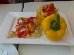 在353广场的7楼,餐厅是敞开式的,白色的座位清爽淡雅,景观也不错,因为这里可以看到商场内部,自动扶梯上有蓝色霓虹灯,坐在餐厅里,透过玻璃就可以看到亮着的两条蓝色长线,非常漂亮。下载了优惠券去的,里面送了一份咖喱虾。虾还蛮大的,咖喱味不重,有淡淡的椰香味道,虾肉也蛮嫩的,就是筋里有点沙,还不错。干煎鲳鱼:鲳鱼蛮大的,煎的脆脆的,连骨头都酥了,蘸了胡椒吃到嘴里酥酥的很香,好吃哒!蚝油生菜,具体名字忘记啦!但是生菜配了蚝油放在锅里,烧得又嫩又脆,十分爽口,推荐一个!相当炒饭,拗了个心形摆上来,样子非常可爱,都不忍心下筷吃她啦!海鲜酸辣汤,不是很酸,也不是很辣,一般般吧。红豆抹茶绵绵冰,抹茶口味的很清新,加了红豆甜甜的,绵绵冰很轻,入口即化,赞的!查看更多