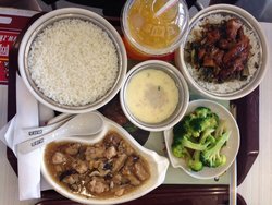 这个店应该是搬走了,现在应该是搬到北大街88号宏府家会广场的新世界百货负一层去了,因为我就是在新世界百货这里吃的。我要的是酸菜卤肉饭,金杏蜜桃汁,香滑蒸蛋,冬菇鸡腿肉饭和西兰花,主要感觉米饭量有点少,后来我又另加了份米,总体很满意,推荐。