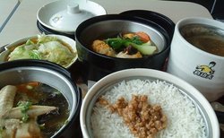 地理位置九棵树西路48号家乐福3楼(九棵树城铁站旁),环境还行,店内很整洁。店员态度也不错。喜欢他家套餐里面的那个生菜,觉得很爽口,而且还挺入味的,也是蒸的么?还不错,生菜本身的口感也没丧失,就米饭吃也不错。