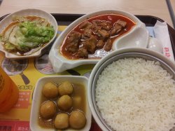 真功夫在小白楼地铁站内朗香街,中式快餐不错的选择。价格划算,店内干净。还可团购。嘿嘿18元能团个单人套餐,合适把。上班的人们经常去的酸菜卤肉饭、四季猪骨汤、西兰花这一餐套餐不错把,营养也均衡的。酸菜卤肉饭,上面一层小块的五花肉,下面一层酸菜丝,在下面是米饭,五花肉颜色特别的鲜亮,肥瘦相间的,带着皮的,满口香,下面正宗的酸菜,这样一搭配真是绝配啊,好吃不腻四季猪骨汤,清汤里面有这几块排骨,别看是清汤,但是味道很浓郁的,猪骨的精髓都融入到汤里面了,好喝,猪骨上面的肉很烂糊的。西兰花绿油油的,一清单为主的,很爽口的。如果这个不合你的胃口还有别的套餐;双拼饭、肉燥脆笋、热豆浆,哈哈,这个是我同事经常吃的,哈哈不过不错,排骨跟蘑菇的搭配。那个笋很脆的,挺好的。…查看更多