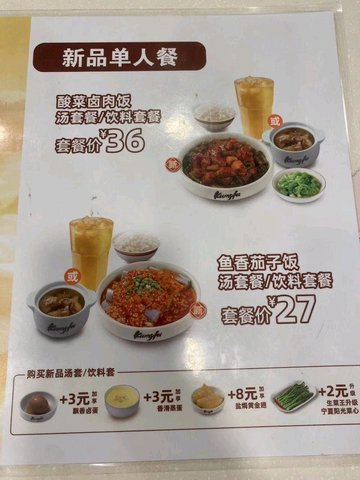 香汁排骨滿足餐 / 香菇雞腿肉 / 香滑蒸蛋 / 鮮辣排骨滿足餐 / 棒打排骨飯湯套 / 榨菜牛肉