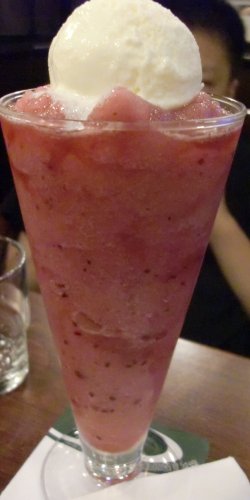 店不小。周六晚上七点多去的,以为人很多,其实就几桌人,较安静。店面灯光较暗,主色调是深褐色的。木质座椅较为舒适,座位被分隔成一格一格的。服务员的态度不冷不热。主打各类咖啡。也有中西式面、饭、点心和茶饮冰品等。价格有些偏贵。选了蓝山No.1咖啡:当然不会真的蓝山咖啡了。应该先尝尝黑咖啡的,结果某人一股脑地先把奶和糖放进去了。咖啡入口有一丝苦味。然后一股香味在唇齿间弥漫开来,满嘴留香,很有回味。较好喝。蓝莓冰激凌冰沙:本来想点巧果冰淇淋的,但图片和品名的顺序不一致,结果点了这个。上面的冰淇淋球是香草味的,一般般。冰沙口感较细,味道也还行。性价比不高。查看更多