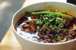 许久没有到燃灯寺路,今天偶然经过,发现这里新开了好几家小馆小铺,决定先试试这家知味坊。名字有点意思,大概是来源于“闻香下马,知味停车”的老话儿,加上一个坊字,又多了些雅致。不过,大概就是这样的清雅,貌似与普罗大众的预判不一致,所以店家很聪明殷勤地在店外的人行道上放上了一个醒目的白板,写上自家的餐品及价格,再摆上小桌小凳,一下子就把食客吸引了过去。不过,对面的那家面馆就开始哭了......店里除了常见的各种浇头的面条之外,还有种来自台湾的“摃丸”。看店招的介绍,是第一次进入成都市场,貌似很有弹性和嚼劲。用老板的原话来讲,就是扔到地上都能弹起来!虽然对新事物颇有兴趣,但是想到这么有画面感的摃丸,我还是打了退堂鼓。后来百度了之后,才知道在新竹,鲜美Q弹的摃丸有着相当的地位,就连小马哥在百忙之中也会到新竹参加“摃丸节”。至此才悔不当初,当然也为我下次到店,找到了很好的一个理由。当家面叫“知味面”,15元一份,可续面。价格比其他口味高了一头,不免让人心生疑惑。老板解释说,知味面就是拥有各种浇头的满汉全席。于是就想到了熊姐家的“豪华面”。这知味面可比豪华面的价格低了不少,所以为老爷叫了一份。承装的海碗还没有被端上桌,就有点让我们诧异,分量确实不小!老爷自知食力不够,连声说,“能把这碗吃完就差不多了。”果然是各种浇头的济济一堂——肉臊、烧肉、排骨、杂酱、豌豆等等。面里配的蔬菜是莴笋片,这一点非常罕见!面条是成都常见的棍子面,个人很喜欢。面条的火候到位,在各种浇头混杂的红汤里,很是入味,再加上莴笋片,又增加了一层爽脆!可惜红烧肉确实有些肥,而且烧得很耙软,属于一入口,就会让人有咬了一包油的错觉之魔力。这一点稍显遗憾。我依然执着地选择了干拌【豇豆面】,小份二两8元,分量很足,绝对赶超普通面馆的分量。豇豆是那种刚断生的泡豇豆,没有豆腥味,这一点不错。佐料中有芝麻酱,更增加了面条的嚼劲和香浓,非常喜欢!还值得一提的是,这里的免费小菜不是泡菜,而是凉拌萝卜丝。相比较泡菜,凉拌萝卜丝更费时费工。店家的选择,体现了一份难得的真诚。所以,老板和老板娘真挚热情的服务就更是意料之中了。…查看更多