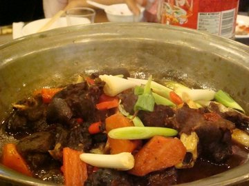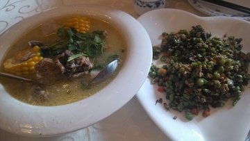 这家知味小厨的地址是金城坊街9-6号,中午去的人超级多,还排队。我最爱他家的玉米炖腔骨了,腔骨有4大块,肉质很厚实,炖的很入味很软兰,里面的玉米是甜玉米,脆脆的口感很不错,汤有点油腻,但是很好喝。