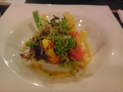 小伙伴们真是效率啊,我猜到了最近会比较忙,准备周末来点评,就加班先奉上了美图,看见了没,看着就诱人吧。当来到了一条小巷,看见这么个性的店名时,你也会忍不住进去,品尝美食吧。之前做过功课,这是一家三文鱼主打的店,呵呵,你爱三文鱼吗,你喜欢音乐吗,那就来吧,绝不会领你失望的!这小巷并不难找,我们一众小伙伴儿还怕找不到呢,其实就在奉天街和东西快速干道那路口不远,在路口有欧风独栋小楼的友好街里,你要是看见一朵一果精品酒店,那就找对了。如果还不清楚,那就找格林豪森或笨猪林吧。(这描述,估计再路盲也能找到了。。。)下班来到这小巷,看见酷酷的店名,磁餐厅,简单的黑色门面,红色的店名,透亮的落地窗,感觉一下子忙碌一整天的身心,莫名的就放轻松了下来。。。开门进来,有些小伙伴已经到了有些还在路上,那就先留下图片吧,点评人的特质,不拍不快,有几处吸引人的地方,进门那个蜡烛,简单的线和不加装饰的灯泡,开放式的厨房,是不是你也被吸引。差点漏掉了,音乐,店里的音乐,后来才知道,老板是音乐青年的,之前玩过乐队,弹的一手好吉他,总觉得懂音乐的男生,好帅好迷人,比女生招人看,哎,异性相吸的原因吗。。。好了,发现越来越慢入主题了,等得食客们不耐烦,该不看我的心得了。生鲜三文鱼卷彩椒条、生鲜三文鱼塔塔、生鲜三文鱼芝士、蟹肉和海虾闪亮登场了!它们在首先里的,还有生鲜三文鱼卷牛油果、鸡肉玉米汤和奶油南瓜汤,也同在,听说牛油果那款,味道不错的,汤应该也不错吧。生鲜三文鱼 卷 彩椒条 奶酪 & 鲜香酱汁(35):呵呵,这么个性的店当然菜单也彰显着与众不同,名字是不是很长,但是很清楚明了的让你看见菜的构成,不像是有些中餐馆,弄一些云里雾里的名字,让你都纳闷这个菜是什么做的啊?!三文鱼肉质很鲜美,彩椒条新鲜清香,瞬间充盈整个口腔。生鲜三文鱼塔塔 配木瓜 沙拉菜 & 鲜香酱汁(35):这个沙拉的三文鱼是粒状的,感觉比较有存在感,吃起来。生鲜三文鱼 配 罗勒叶 香橙 芝士 & 香醋汁(35):造型超级美,一层层的叠放,各种食材同菜名一样的彼此相拥,可惜夹散掉了,一起吃下,那丰富的层次和口感,想想都口水。。。蟹肉和海虾 配沙拉菜 三文鱼籽 & 奶香玉米汁(35):以上几款都偏清淡的,还略酸,开胃的,这个呢,就比较鲜香了,又让我着迷的虾仁出现了,虾蟹肉质鲜甜,各人口味不同吧,反正我们一众小伙伴,都中意这个,一众等于四。香煎三文鱼 配 西兰花 红腰果 & 马玉兰酱(50):沙拉开胃的然后呢,那就来主菜吧。火候掌控的很好,外焦里嫩,红配绿的配料,各自默默的为主角鱼肉提升着口感味道。照烧三文鱼扒 配 迷你胡萝卜 西兰花 & 照烧青瓜橄榄酱(50):在这些清淡的才中,这个算是比较重口味的,还有黑胡椒呢,迷你胡萝卜很可爱。三文鱼 配 起酥 麦片 柠檬 迷你胡萝卜 & 麦香汁(50):因为是开放的厨房吗,这个香气最浓郁了,早早就飘出来,勾着小馋虫啊,让人迫不及待。别忘了将柠檬汁淋上哦,奶香十足的一款,就是啊,总有一款适合你。牛里脊 配 土豆 孢子甘蓝 & 烟熏奶酪酱(50):天生对牛排不是太感兴趣,所有注意力都跑偏了,孢子甘蓝,超级迷你,度娘说它纤维少,营养丰富,每百克嫩叶中含有粗蛋白4.9克,胭脂0.4克,糖类8.3克,维生素102毫克,胡萝卜素 883国际单位,维生素B1 0.14毫克,维生素B2 0.16毫克,钙42毫克,磷80毫克,铁1.5毫克,蛋白含量在甘蓝类蔬菜中是最高的。原产地中海沿岸,由甘蓝进化而来。牛排,香煎,照烧的上面点缀着香芹还是什么芹来着,清香的味道很赞,还没有芹菜那么冲,反正很解腻,让味道不单调。意大利面条 配 三文鱼丁 圣女果 & 意式肉酱(45):面的成熟度很好,融合肉酱味道很赞,个人超爱吃意大利面啦,这简单中通着不简单啊。三文鱼无处不在吧,哈哈。哦,小香芹也在。有牛油果的米饭,再次错过,有机会来查缺补漏吧。甜品的冰激凌:两个球,口感浓郁绵密,什么口味来着,香草吧。最后,还有幸见到了帅哥个性老板弹吉他,听着真有感觉,赞。小聚真是开心啊,吃的更是味美,不知不觉,时间已经很晚了,好吧,有机会再来光顾,感谢小伙伴的推荐,感谢相识与相聚。缘分啊,谢谢啊!P.S.:加班加点为美食!美好着呢!…Read More