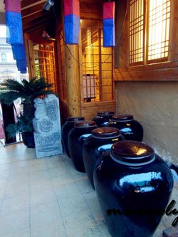 店在二楼。门左侧是海鲜缸,好多巨大的板蟹和其它海鲜。另一侧是石子路铺就的小花园。门对面的檐下是大大的酒缸。大门是韩式风格的屋脊和木格门。门边小小的景致,光洁的地板,木梁,石墙,木色为主的色调很有韩国风情。木桌子上面垂下细长的抽风管道。半开放式的厨房。楼上是包房,榻榻米座位,简洁清爽。主打韩国各式海鲜、火锅、烤肉。价格很实在。免费送的小菜很精致,小鱼、蛋卷、黑豆和泡菜都挺爽口的。活板蟹现在特价139元一斤,还可以一蟹四吃。蟹脚和蟹蚶用来清蒸,肉质新鲜,嫩滑多汁,滋味非常鲜甜。蟹膏用来炒饭,装在蟹斗里。炒饭咬起来很有弹性,加了海苔和鸡蛋后,颗粒分明,鲜香十足。蟹腿用来炒年糕,韩式很少见的香辣味的,火候正好,年糕软弹,香辣中带着一丝甜味,很好吃。蟹身上的肉用来熬粥,自然也是很鲜美软糯。份量很足,足够三个人分享。活章鱼是它家的特色,当然也要挑战一下。35元一只的细腿章鱼,店员剪短后仍然很活,有点吓人。胆小的人可以挑小段的,非常滑腻,肉质嫩滑。香辣马口贝的做法也特别,里面除了青椒外还加了孜然,鲜甜的贝肉带着辣和香,滋味十足,光阳烤肉鲜嫩多汁,很入味好吃。泡菜章鱼饼很软很糯很香。总体感觉很好,很地道的韩国料理,配上米酒吃得很满足。查看更多