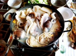 礼瑯韩国料理店里的重头戏是活章鱼。生吃活章鱼可是要点勇气的,吃之前有点吓丝丝的,不过他家的章鱼倒是蛮新鲜,蛮有嚼头的。吃的时候章鱼的吸盘还会吸住你的舌头的。海鲜火锅里蛤蜊超多的,店家很豪气哦。他家的烤肉也很不错的。查看更多