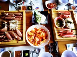 想吃韩国料理就到这家来了,环境非常的不错,装修的很有韩国风格。推荐里面的阳光烤肉,真的特好吃,很香的,看着烤的肉汁都流下来了。里面的调味猪排也很不错,要68块,东西都不便宜,但质量都不错。服务态度也很棒!查看更多