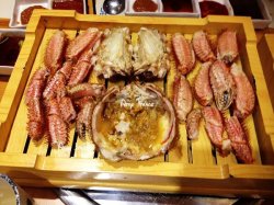 活章鱼,多么有新意的玩意阿。朋友在韩国吃过,说是特别好玩,现在上海也有了,非要去一尝究竟海鲜饼:出乎意料的让人喜爱,简直爱不释口。一上桌,蛋香四溢,有虾仁、章鱼。蛋液和面糊的比例调配得当,完全不觉着是啃着韩国大饼。强烈推荐活章鱼:35元一个,端上来时,还是活生生的,在盘中到处乱爬,一不留心,还会上演章鱼大逃跑。除了油炸蝎子,这是第二次吃比较“奇怪”的美食。用手抓起一只,它就用爪子上的吸盘吸住盘子,好不容易给它蘸了香油,它又吸住桌子,一番挣扎之后,塞入口中,咬碎它的脑袋。此时它的吸盘还是会吸住口腔。咀嚼很久,才能吞咽下去。味道,说不上来,一紧张,都在想怎么把它吃掉,着实好玩。毛蟹:特别喜欢吃蟹,整只已经被拆分好,连蟹脚都已经敲开,桌上有吃蟹的工具,一挑,蟹肉就剥下来了,赞。直接吃都很鲜甜鲜甜的~~~个人以为,蟹脚更美味呢!!!价格只有某些知名日料店的1/3,强烈推荐河鲜刺身:不得不提,很多人都爱,煮熟的那种很肥腻,这次尝尝刺身。包裹鱼皮和水芹,蘸上芥末酱油,弹性十足。地点离9号线有15分钟的路程吧,在易买得旁边的风情街。装修是木屋风格的,屋顶都是木板结构,灯光明亮温暖,整体感觉很干净,不会因为是烧烤店而觉得烟雾弥漫或者地板油腻腻的。优惠券很是给力,希望老板在浦东也开一家就更好啦~~~是芥末日后,最给力的一餐…查看更多