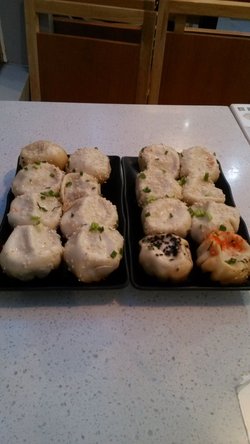 在特力屋楼上的美食广场内,挺好找的。去得有点早,人不是特别多,点了三鲜全汇,里面有二只鲜肉,一只蟹黄,一只黄鱼,一下子能吃到三种口味的生煎,很实惠。再点了几两鲜肉的,一份炸猪排,一碗小馄饨。生煎不是刚出炉的,但味道还是不错的,里面汁水不少,可惜有几个皮破掉了,汁水有点漏掉了,味道稍微差了些。吃到一半时人多了不少,收银台那里排着长队,生煎出炉时服务员会叫大家去排队领生煎的,刚出炉的味道肯定很好,可惜去早了。炸猪排很不错,配着经典辣酱油,就是小时候的味道,猪排也不是拍得很薄的那种。小馄饨一般般,肉很少,汤也不是很鲜,不推荐。