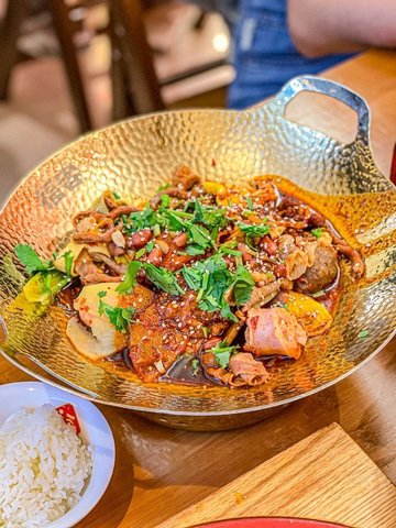 番茄豚骨湯鍋底 / 娃娃菜 / 蓮藕片 / 萵筍片 / 香菇 / 油豆腐