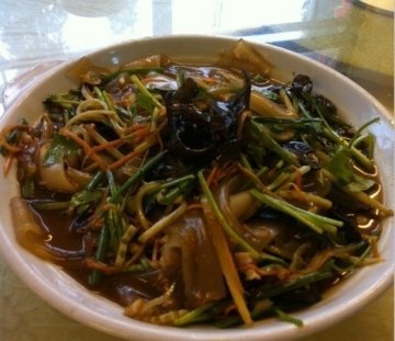 还算是蛮地道的一家店,店主是东北人,店里面收拾得还是蛮干净的,只是上菜的速度好慢呀,等了好长时间才上来,大拉皮拌的味道一般,不是很爽口,地三鲜炒得不错,很入味,里面的茄子很软很好吃,老板人不错,给的份量还是很足的。