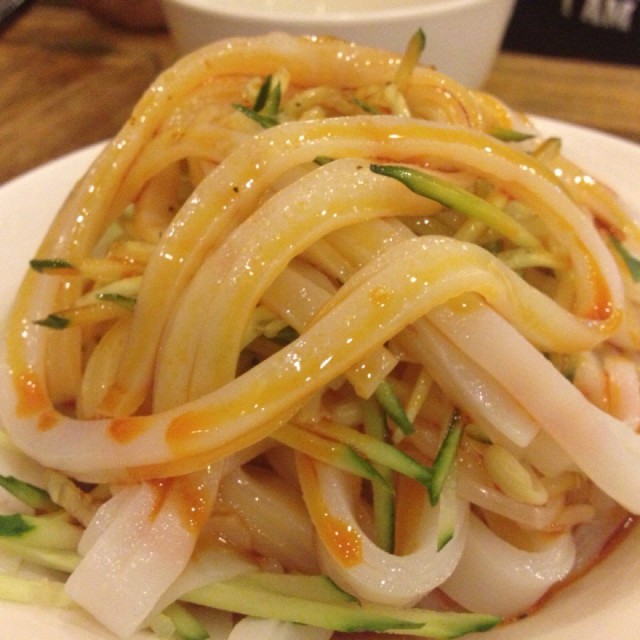 陕西风味菜馆, 店里的桌椅都是陕西风格的, 桌面较低的同事椅子高, 个人觉得坐着不是很舒服。油泼扯面的辣椒面上淋上热油后 变得非常的香, 一定要拌匀了再吃, 因为食盐等调料都在最下面。 秦镇米皮是每次都点的, 虽然淋了辣油,但是感觉很清爽开胃。