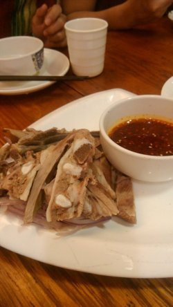 秦唐府的羊肉泡馍确实是我吃过的北京陕西菜馆里面最正宗的一个了,而且价格还要挺实惠的,羊肉汤本身就是挺不错的,很特别的羊肉膻味,合起来特别的鲜,馍馍也烤的挺不错的,特别的干,甚至有点粉粉的感觉了。 羊肉冷盘也是挺不错的,都是带骨头的羊扒肉,肉是挺厚实的,不过味道不是太浓,倒是啃起来挺过瘾的。查看更多