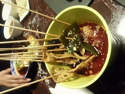 秦蜀港湾时尚中餐厅中午的时候人挺多的,都是附近写字间的人过来吃饭,小吃做的很好,价格有些小贵。冷锅串串香辣入味,里面菜的种类挺多的,比较喜欢牛肚,吃着很弹,辣味十足,海带挺Q的,也很入味。藕片吃着很脆,味道清甜,土豆片有点发生,不是很喜欢。查看更多