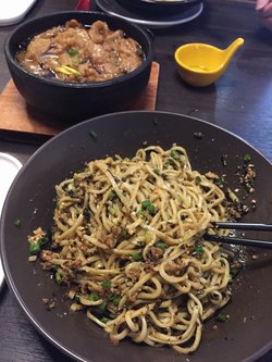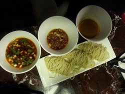 秦蜀港湾时尚中餐厅装修的很精致,餐厅环境好,服务也很好。这里的主食比较多,做的精美又好吃。一面三吃是三小份面和三份调料,调料给的挺多的,面很劲道,吃着清凉爽口,喜欢吃肉酱的调料拌的面,酱香味很足,口感微辣,里面还有好多的肉末,越吃越香。查看更多