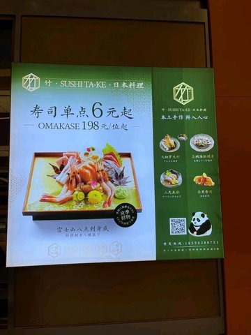 竹SUSHI TA-KE日本料理 (海雅缤紛城) (深圳) 網址: https://s.openrice.com/KtbS0W0PIvU00 地址: 深圳寶安區寶安中心區寶民一路99号海雅缤紛城L5層L509号鋪 電話: +86 18594288751