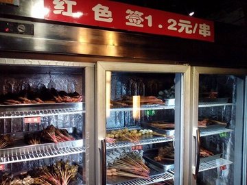 很现代,营销方面也搞得相当的好。店里随时都是满座。店里的装修。文化墙也很有特色。他们家串串脆骨特别好吃。但是牛肉一般。我开始以为牛肉好吃,拿了很多。后来后悔没多拿点脆骨。干碟油碟必备的。他们家跟别家不同的就是他们家除了串串还卖烧烤之类的其他种类。很综合。特别是这种五花肉。入口即化。太太太太好吃了。此处32个赞。这个猪天堂,我尝试性的点了一个,不好吃。兔腿。是不是品种很多。这个也很香。有种野味。最后还点了生蚝。加了小米辣,哈哈。好辣。他们家烧烤味道比串串好,喜欢各种都尝一下的童鞋可以去试试。