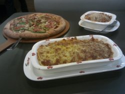 通州家乐福一楼的披萨店,这家店记得刚上班的时候吃过一次,几年过去了,还存在着呢。披萨料很足,选了一个金牌海鲜的,虾很多,芝士也很多,撒一点辣椒汁,特别香。又点了一个意面,番茄汁炒肉末和面条混合一起,特别的香浓。价格适中,2人消费140多,吃的特别满足。查看更多
