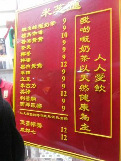 沪上小有名气的奶茶店,人气相当高,经常要排队,店里装修风格像港式茶餐厅,还放着粤语歌。价格不贵,性价比很高。招牌丝袜奶茶、港式鸳鸯各有风味。丝袜奶茶,茶味很足,很地道,口感微微有些涩。港式鸳鸯与丝袜奶茶相比,多加了点奶,口感柔和些。查看更多