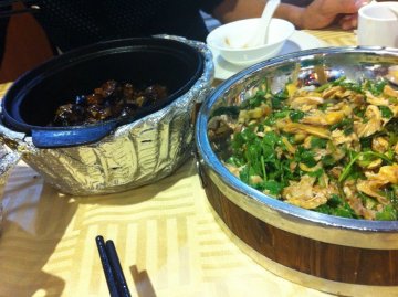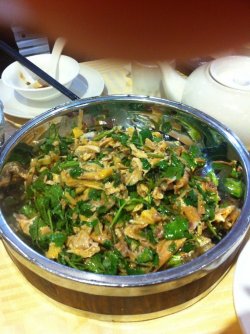 那天上班,朋友来公司找我吃饭,公司附件吃饭的东西比较少,之前路过的时候看到他们家生意还可以,环境也可以,所以就带朋友去尝尝看。还没到中午12点,11点半,但是店里的座位已经在坐满了三分之二了,生意还不错吧!中午吃饭时间比较赶,我们就随便点了几个菜,他们家的菜还不便宜,感觉人均在六七十左边吧!服务也还可以,但是看到的服务员都是年纪比较大的,给人的感觉有点不是很好。点了他们家的百叶鸡翅,算是炸的吧!但是味道还真是不咋滴,外面涂了一层的作料,带点甜味,里面没怎么入味,所以吃起来不是很好吃,没有那种外脆内嫩的那种美味感,算是吃了那么多家店里感觉味道最不好的,里面有很多蒜头,但是都是生的,吃不了的,下次来他们家绝对再不点这个菜。茄子,具体什么名字有点记不清了,但是里面没加什么辅料菜,就切子,一片一片的,不过味道还可以,虽然切的比较大块,但都算是入味了,也不知道里面是加了什么作料,可能是一种酱吧!带点甜感,分量还还足,不过也是,一份蔬菜,好几十呢!分量不足,真没人吃了。另外我们点了一个鸡,感觉属于冷菜系列的,好大一盆,里面有花生米,花生米好脆,我喜欢,另外里面的香菜就不喜欢了,生的,算是装饰作用吧!不过喜欢吃香菜的人还是会吃的,另外这个鸡肉比较淡,会吃香味的人混在一起吃会感觉味道很好,鸡肉很多骨头都被弄掉了,弄成一条一条的,吃起来很鲜,汤汁里加了麻油,增添了一份香味。本来想点个汤的,但是他们家的汤种类还真不多,而且好贵,都是五六十一道,不过时间也不够,算了,吃饱了就行了。他们家餐巾纸还算钱,2元一包,外包装是印的他们餐厅的名字,算是打广告吗?这次算是试吃吧!总体感觉一般,我想我下次也不会去的,属于粤菜,之前吃的粤菜味道和这家还真不一样!有点小失望!…查看更多