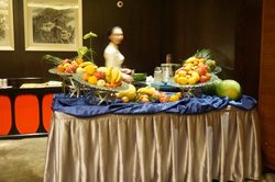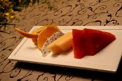 有幸参加美食网站的试吃活动,这次活动可是在高大上的元一希尔顿五星级酒店哦。虽然天公不作美但是不能阻挡我想要尝试美食的心情。地铁下来还叫了一辆摩的地理位置比较偏啊。今天的活动安排在粤轩中餐厅,好大的一个包房啊,简直就是接待重要宾客的场所,感觉档次一下子上去了。大大的圆形餐桌中心放置了很多的鲜花,有我最喜欢的香水百合呢!酒店也很重视这次的新菜试吃活动,派出了酒店的有关人员一起陪同,边进餐边为我们介绍每道菜的名称,食材,做法及功效。显示出他们对活动的重视程度。在等待的过程中有专门的礼仪小姐为我们鲜榨果汁,芒果、西瓜、哈密瓜等等。前菜:牡丹河虾仁、鸳鸯萝卜卷、冰镇黄酒鸡、香芒烧鸭脯造型别致,用材讲究,有开胃之功效。个人最喜欢香芒烧鸭脯,芒果香味融入鸭脯中别有一番滋味。主菜:川贝海底椰黄耳汤:汤色清冽滋补,口感醇厚。白雪藏龙:选用海南小青龙,红色的小青龙凹着造型,边上的白色粉嫩的虾肉突出了粤菜清谈爽口的特色。烧汁煎澳洲和牛扒:采用进口澳洲和牛,肉色红润只是稍稍老了一些。金华玉树蒸星斑片:新鲜的东星斑的确是好味道,鱼肉的自身鲜味让人赞不绝口了。杞子松茸浸津白:红色的枸杞、黄色的娃娃菜,配以淡红色的松茸颜色搭配协调,营养价值很高,汤汁鲜美无比。黄金脆米富贵浓虾汤:用的是泰国香米先经过烹炸,再将汤汁浇入,咬上去香脆可口。甜品:木瓜蔓越莓炖桃胶:养眼美容最适合女孩子来享用了。新菜套餐人均996的套餐+15%的服务费,价格不菲啊!总体感觉:食材用心造型独特,回味无穷齿颊留香,传承粤菜之经典。查看更多