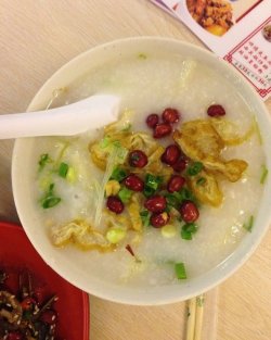最近天气干燥,又吃了很多的辣的食品,嘴巴里长了四个火疱,难受。所以在犹豫晚上吃什么的时候就去喝粥了。广粥城的粥不算很好也不算差的,总的来说,如果价格还能实惠点,我给的分会高点,呵呵。粥熬得比较烂,不过米如果用香米煮的话,会更好吃。点的是清火的冬瓜粥,虽然是冬瓜,但是滋味还是熬出来的。挺香的。加几粒花生在里面更香。还点了个小菜,配着吃。不错,吃得很舒服很满足。