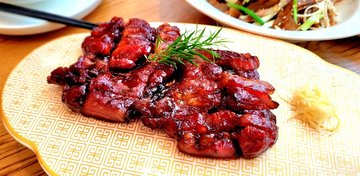 皇庭廣場又大又多餐廳真的有選擇困難, 而且星期六商場內人山人海. 朋友選了這間餐廳食中菜. 餐廳座的位置都比較多2-4人檯, 所以不用等候太耐. 除了參考大家的食評之外,也看看附近食客選什麼菜式.原來此餐廳主打食燒鵝, 我們2人也點了一份$88上庄(原本想食下庄$98可惜賣完了~我們大約12:45左右下單). 不過,上庄都可以有幾件肉肉不算太多骨😅皮脆香口又唔油, 鵝肉多汁,味道可以不會太咸. 還有奉上4小柸山楂汁,應該是化解燒鵝的肥膩.不過,山楂汁偏甜.我與朋友也覺得麻麻地.所以飲了少少. 反而,每檯的茶比較清香,喜歡此茶香.金牌蝦醬啫唐生菜膽~啫啫聲的蝦醬生菜😋味道香濃正呀😝海苔黃金一口酥豆腐~涼了皮就唔脆,所以要盡快食😅甜品&冰箱貼~是打卡&收藏送的.甜品“青綠”~有少少似抹茶奶凍,不太甜.最欣賞奶凍上面條啫哩鯉魚😋又好睇又有得食(免費)😆2人午餐食了$160(人均$80)食到飽飽粤集·手工粤菜(皇庭廣場店)地址:福田區福華三路皇庭廣場L1層202交通:深圳地鐵1號/4號線會展中心站C出口上一層…查看更多