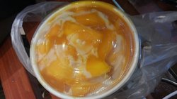 附近没有位置可以放着吃,就打包了。但是一眼看上去都是芒果粒还有炼乳,被诱惑的死死得呢还是很大一个。冰块可能因为打包了一会,有点稍稍化掉了,但是一口下去还是很满足啊。我一个人把他们全部吃完了,冻得牙齿疼疼得,但是超级满足啊。就是总体有点甜,可能是我吃的太多了,囧