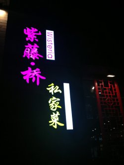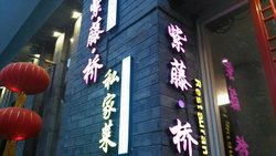 紫藤桥在中关村步行街上,每次逛街都路过好多回,店门口的霓虹灯很醒目。一进门是等位区。周末的18点不需要等位,不过店里已经有不少客人了。店内环境还挺时尚的,不过桌与桌之间的空间较小,稍微感觉到店里有些嘈杂。大厅有三个大桌,其他就是包间了,有800-1000的最低消费。主打创意菜,算是多种菜系的融合,但是口味感觉还是偏北方一些,我们南方的小伙伴们表示吃的不是很习惯。用了团购的代金券,把人均拉低了一些啊。菜单前头单列了店里的招牌菜,顺势点了一些。【紫藤桃仁腰花】48元一例,招牌菜。有腰花、核桃和木耳。腰花切的比较粗犷,丝儿较粗,略微有些异味,核桃就是单纯的核桃仁。这道菜的口味我们都觉得有点怪,微酸,说不上来的感觉,腰花炒的还是很嫩的。这是道热菜,看好友评的是凉菜,不知道是改良了,还是不是同一道。【酱鸭杏鲍菇炒芦蒿】38元一例,招牌菜。用一个像展开书本的盘子盛着。菜量还挺大,性价比不错。味道微辣,材料主要是杏鲍菇了,杏鲍菇切成了很细的丝。鸭肉丝虽然不多,但是炒的整盘菜很香,味道很下饭,只是筷子夹着有些费劲。【干锅千叶豆腐】36元一例,千叶豆腐正方形薄薄的一片,放了芹菜和莴笋,底下居然发现了好多块腊肉。味道都很入味,当天我还比较爱吃的一道菜。看来英雄所见略同,转了几圈后,这道菜见底了,成为第一个被消灭的菜。【老豆腐】28元一例,小料提供了一份辣椒酱和一份葱。豆腐味道很香,又嫩,蘸一下酱几乎就有味道了,但是辣酱略显普通,有点像买的那种不辣的剁辣椒,有点酸,比西贝的豆腐酱差很多哦。【老酒煨肉】48元一例,看着有点像东坡肉,已经给我们分好了八块。能吃的出酒香味,瘦肉多肥肉少,瘦肉的口感有点硬,有点在吃梅菜扣肉的感觉啊..【蒜蓉粉丝娃娃菜】32元一例,蒜味很浓,粉丝缠在一起了不太好分,娃娃菜有些地方不太入味,味道整体来说还可以吧。同学说吃出了蒜蓉扇贝的感觉,哈哈~~米饭3元一碗。整体来说菜的口味一般,或者说不太合我们的口味,我选了这个地,被我的小伙伴们批评了啊查看更多