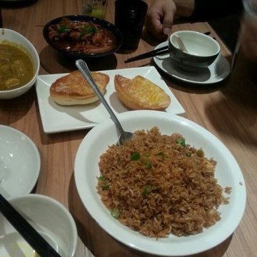 紫阳富豪精菜坊这家店开在单位上课培训的地方,所以最近培训后的午饭总会在这里解决.这家店内环境幽雅,服务员也很热情.比较喜欢它家的瑶拄炒饭,里面选用了大颗粒的瑶拄撕碎后和碧绿的芥兰一起炒,色彩丰富,米饭颗粒分明,入口鲜脆好吃.它家的量也很足,属于非常不错的选择.