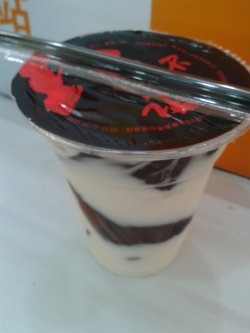 微信上大转盘中到了这家店的寒天奶冻,其实很早就知道这家店了,因为他们家的巨蛋烧蛮有名的,看上去挺好吃的样子。微信中奖蛮昂三的,要三天内去,正好要去徐家汇,还蛮方便的。台湾美食街一直去的,虽然有点大食代的赶脚,但是我觉得里面的东西都蛮好吃的,价格也不贵。红不让也是一个小小的门面,去的时候店里没什么生意,验证好之后店员就把奶冻直接给我了。超级冰的,不过当天正好升温,20多度,赶脚是烧仙草加上奶茶的节奏,奶茶味倒是奶味很浓,不过也不是很甜,烧仙草就是普通的那种,口感滑滑的。价格是9元一杯,还是蛮公道的查看更多