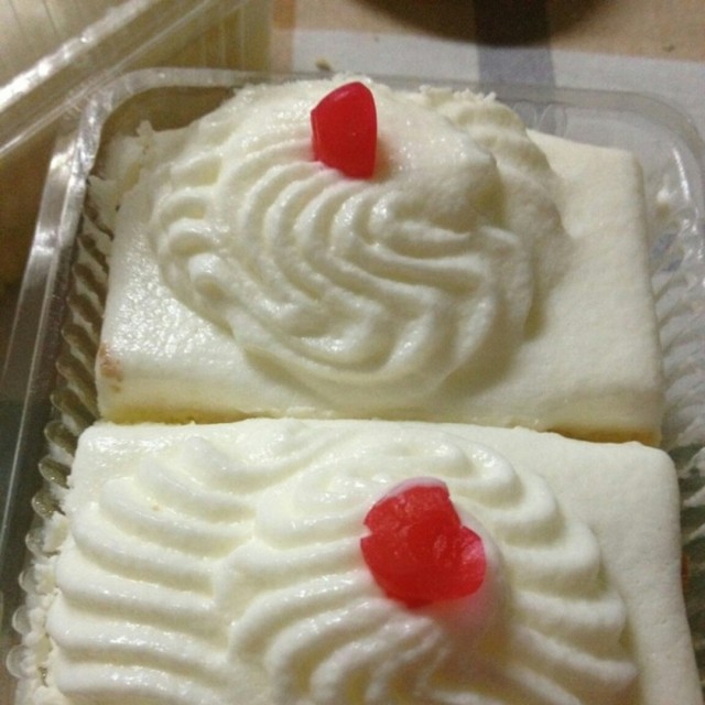 中午跑客户都没来得及吃饭,刚好看到红宝石的店面,就让同事停下车然后去店内买的鲜奶小方,可能是太饿的关系后悔买少了,味道没来及品尝一块就吃完了,奶油真的太细腻了,味道好好吃,奶香味,果香味,蛋糕的软糯,全部都有,便宜实惠的好蛋糕。