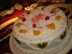 奶奶的九十岁生日蛋糕,姑姑特地去老牌的红宝石定了个大鲜奶蛋糕,平时吃他们家的鲜奶小方,九十大寿么,就吃鲜奶大蛋糕了,哈哈哈! 凭良心讲,就造型上来说,红宝石跟现在新兴的那些西饼店真是没法比,大蛋糕上很简单地写个寿字,有些水果和裱花,卖相一般啦。不过吃口好啊,那轻轻的鲜奶,松软的蛋糕体,搭配起来一级棒的说,好吃,一点不肥腻。查看更多